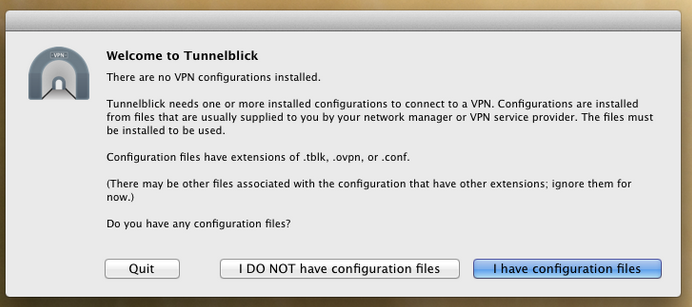 Open the chronicle and after that open a .tblk record of the VPN server you'd like to utilize - this will import the setup profile into Tunnelblick. You can then skip to step #8