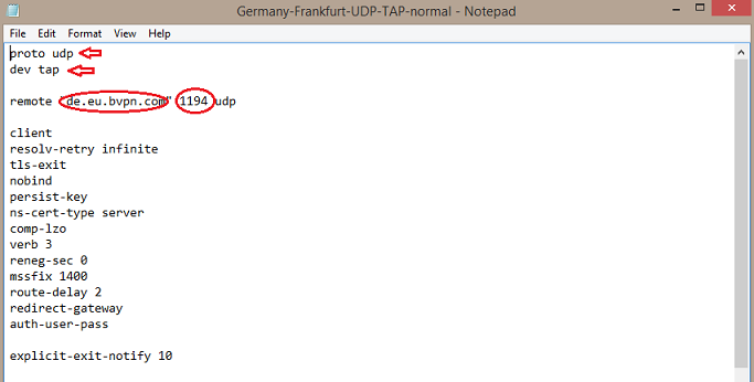 “Server IP/Name” can be located in the config file you’ve downloaded. For example if you have downloaded Germany-Frankfurt config file, Server Name will be “de.eu.bvpn.com”