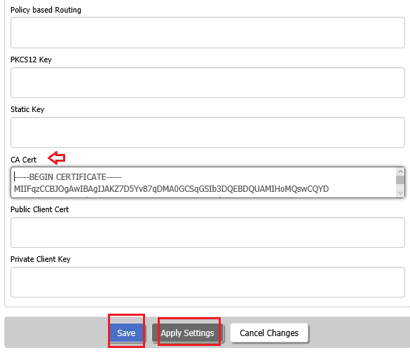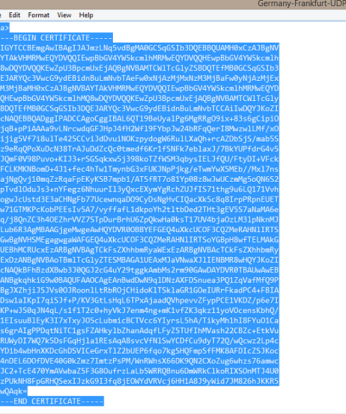 In the config file, highlight and copy the text between <ca> till the end <ca/>