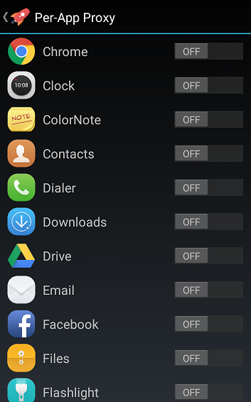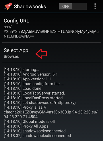 You can select the apps that you want to be connected to Shadowsocks proxy. Tap “Select Apps”.