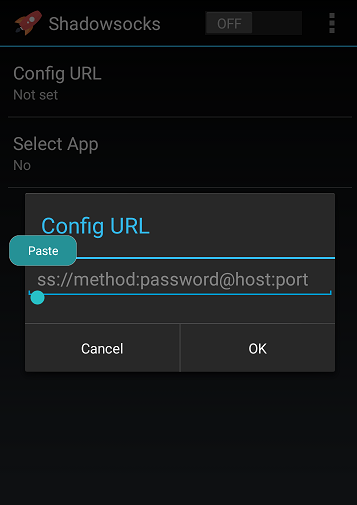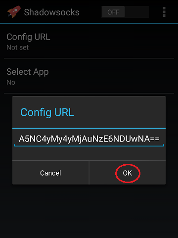 Open Shadowsocks client you’ve just installed. Tap “Config URL”.