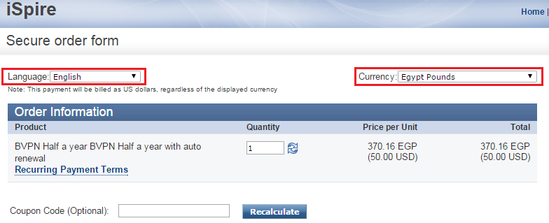 You can change “Language” and “Currency” from the specified dropdown lists.