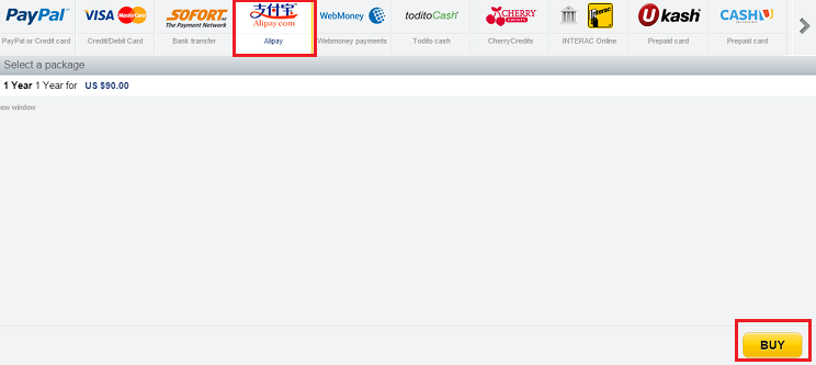 Choose “Alipay” then click on "BUY"