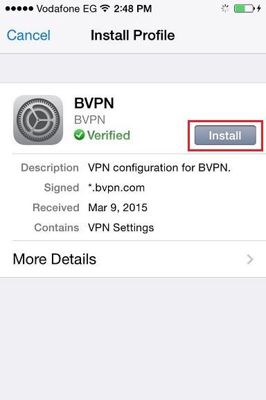 You will have to confirm the installation of the VPN Profile by providing your 4-digit passcode then tap “Install Now”.