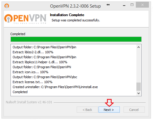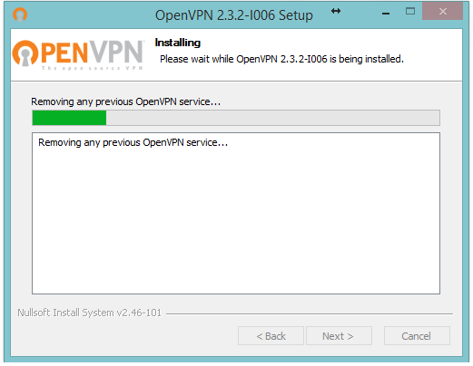 Wait while OpenVPN is being installed.
