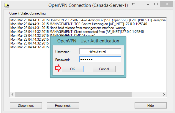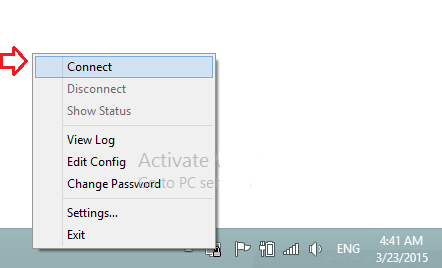 Right click on “OpenVPN” icon in the task bar and select “Connect”.