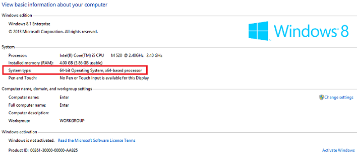 Check the statement next to “System type”.