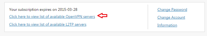 Login your profile page on bvpn.com and click on “Click here to view list of available OpenVPN servers”.